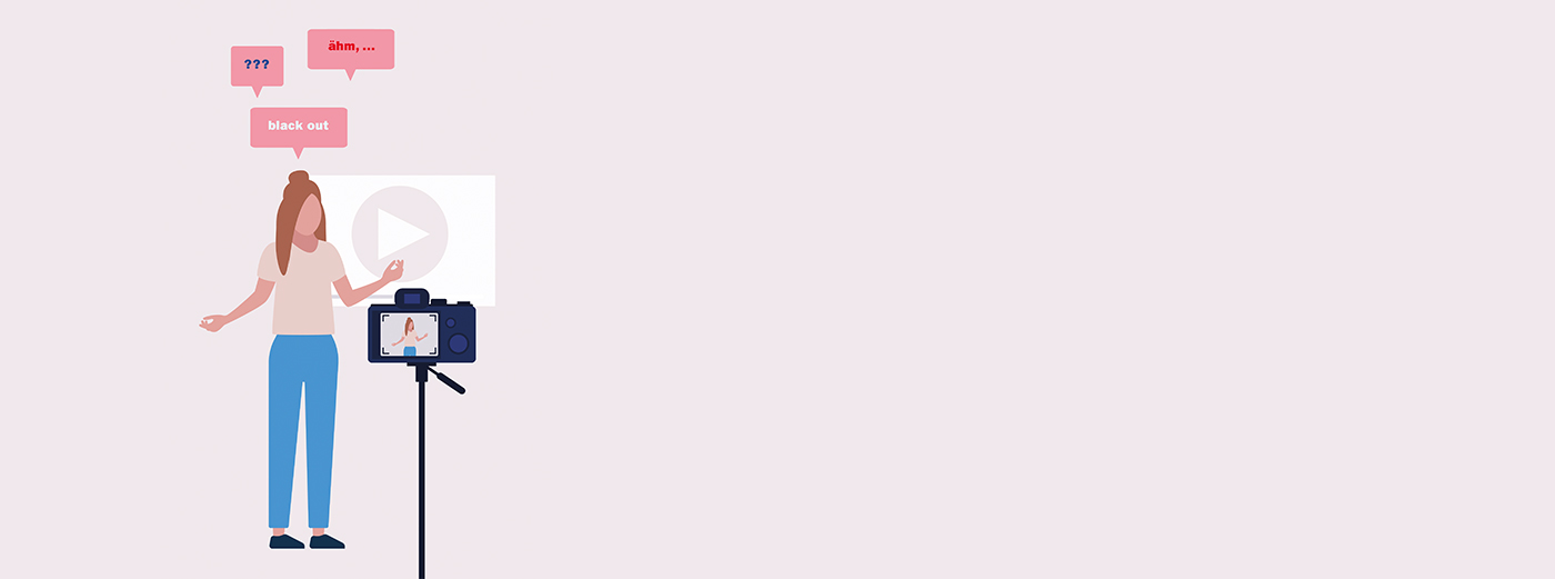BIld: Banner eine Frau steht vor einer Kamera und erzählt