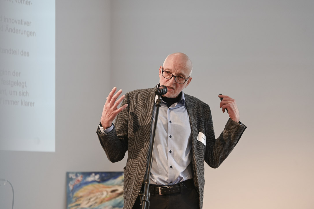 Frau zieht ein großes schwarzes Knäul hinter sich her