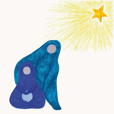 Bild: Stern leuchtet hell, darunter zwei Gestalten, die sich umarmen