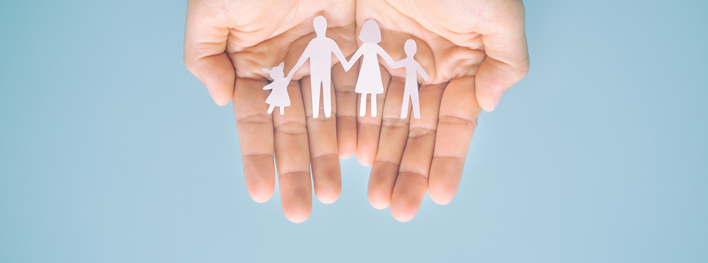 Bild: Hände halten ausgeschnittene Papierfamilie