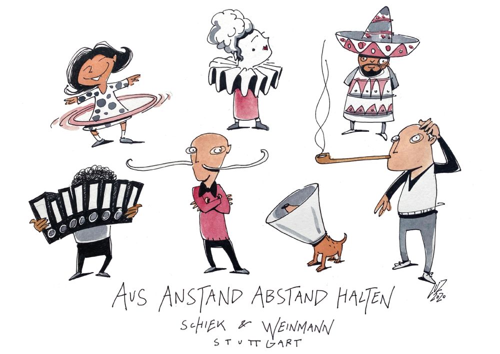 Bild: verschiedene Menschen halten Abstand voneinandern