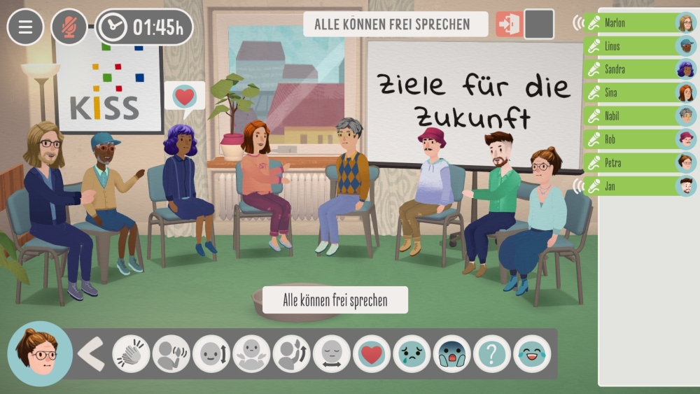 Bild: Screenshot aus der App Meeting Me zeigt vier Wartebereich des virtuellen Gruppenraums