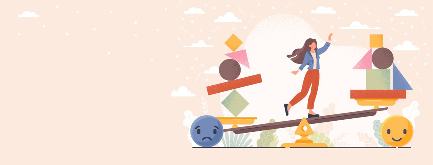 Bild: Frau balanciert zwischen positiver und negativer Emotion