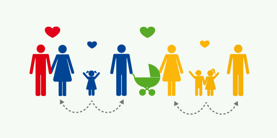 Bild: Familienmitglieder aufgereiht und mit Pfeilen verbunden